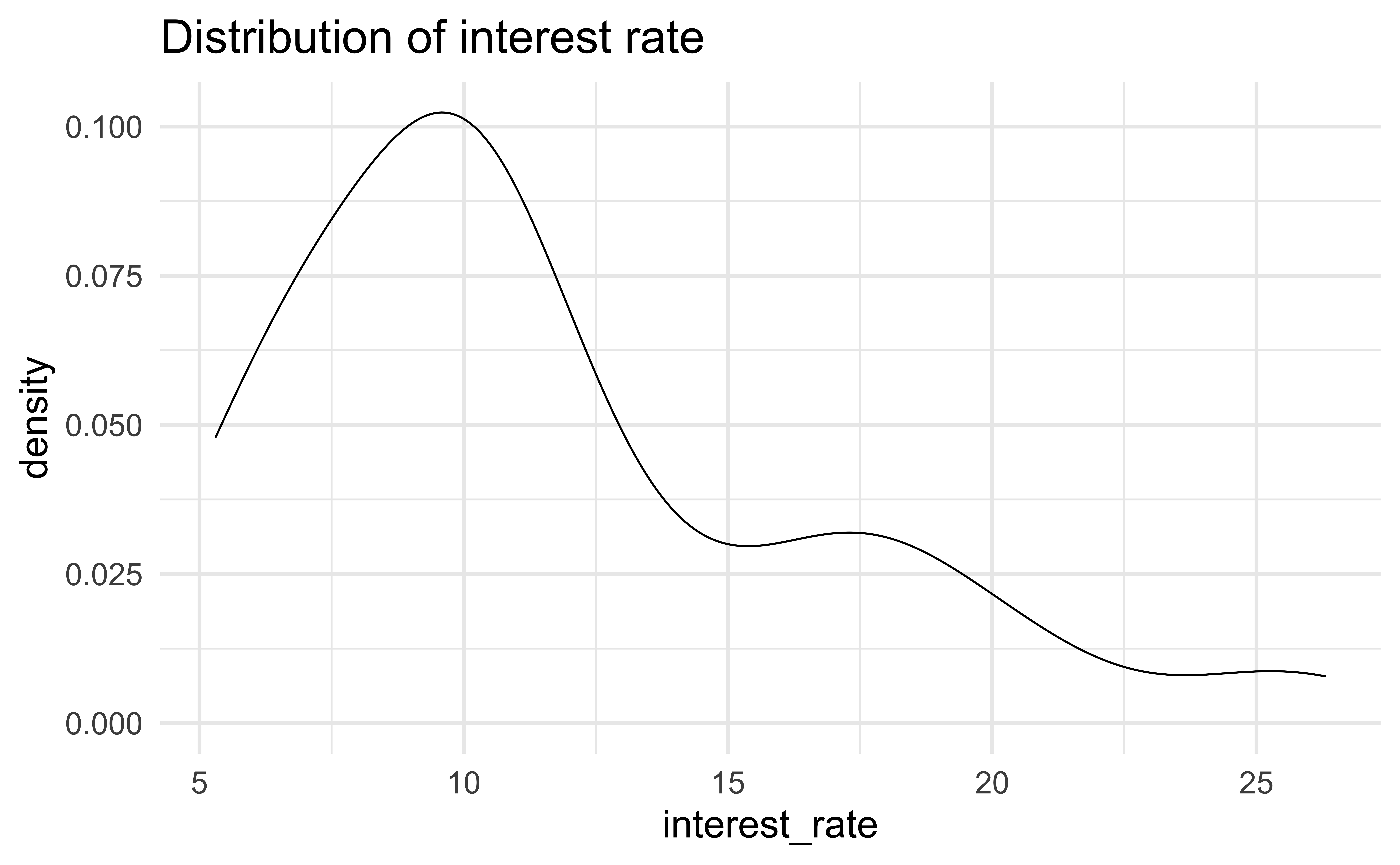 annual_income: Annual incomedebt_to_income: Debt-to-income ratio, i.e. the percentage of a borrower’s total debt divided by their total incomeverified_income: Whether borrower’s income source and amount have been verified (Not Verified, Source Verified, Verified)Outcome: interest_rate: Interest rate for the loan
