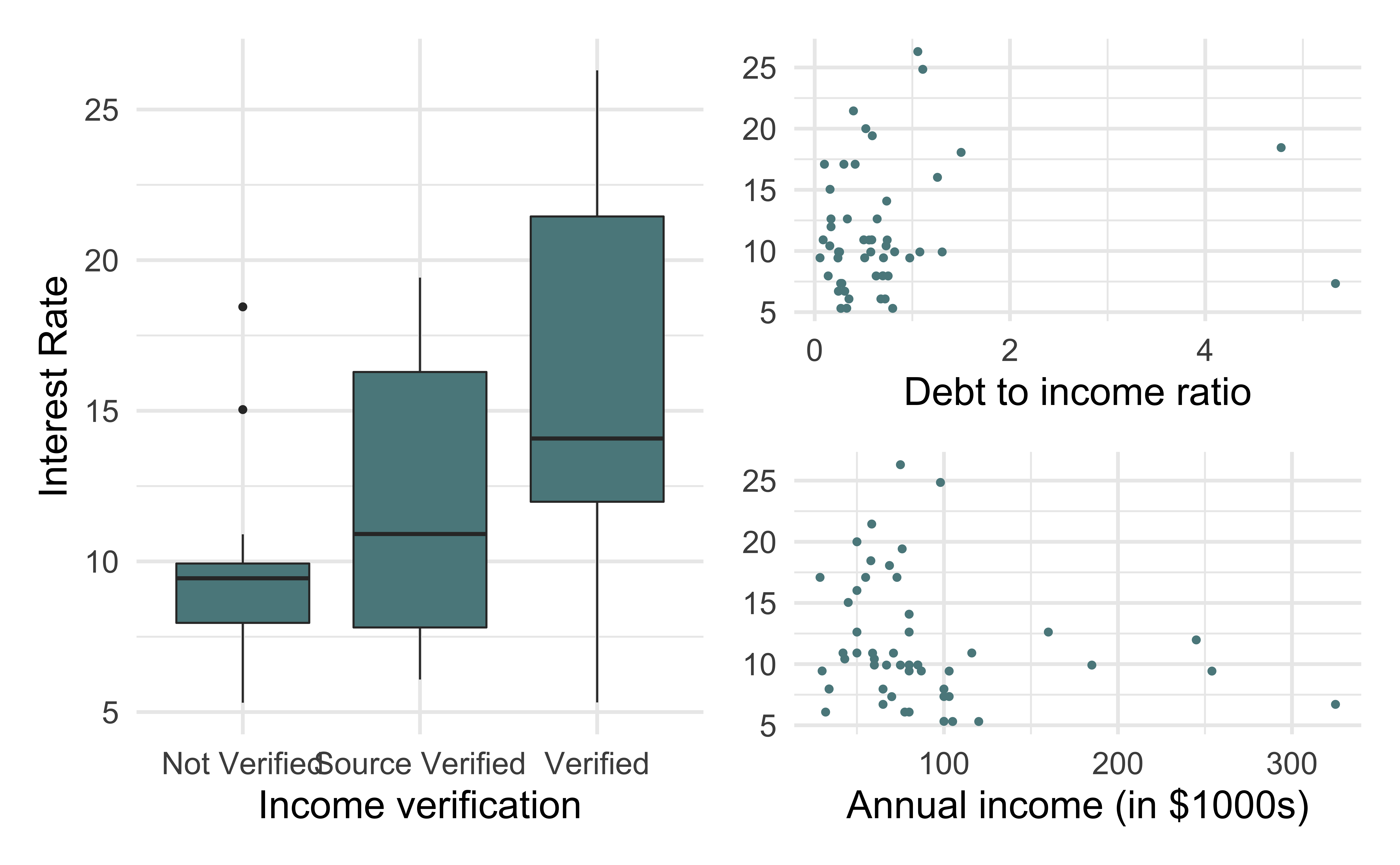 select(interest_rate, annual_income, debt_to_income, verified_income) %>%