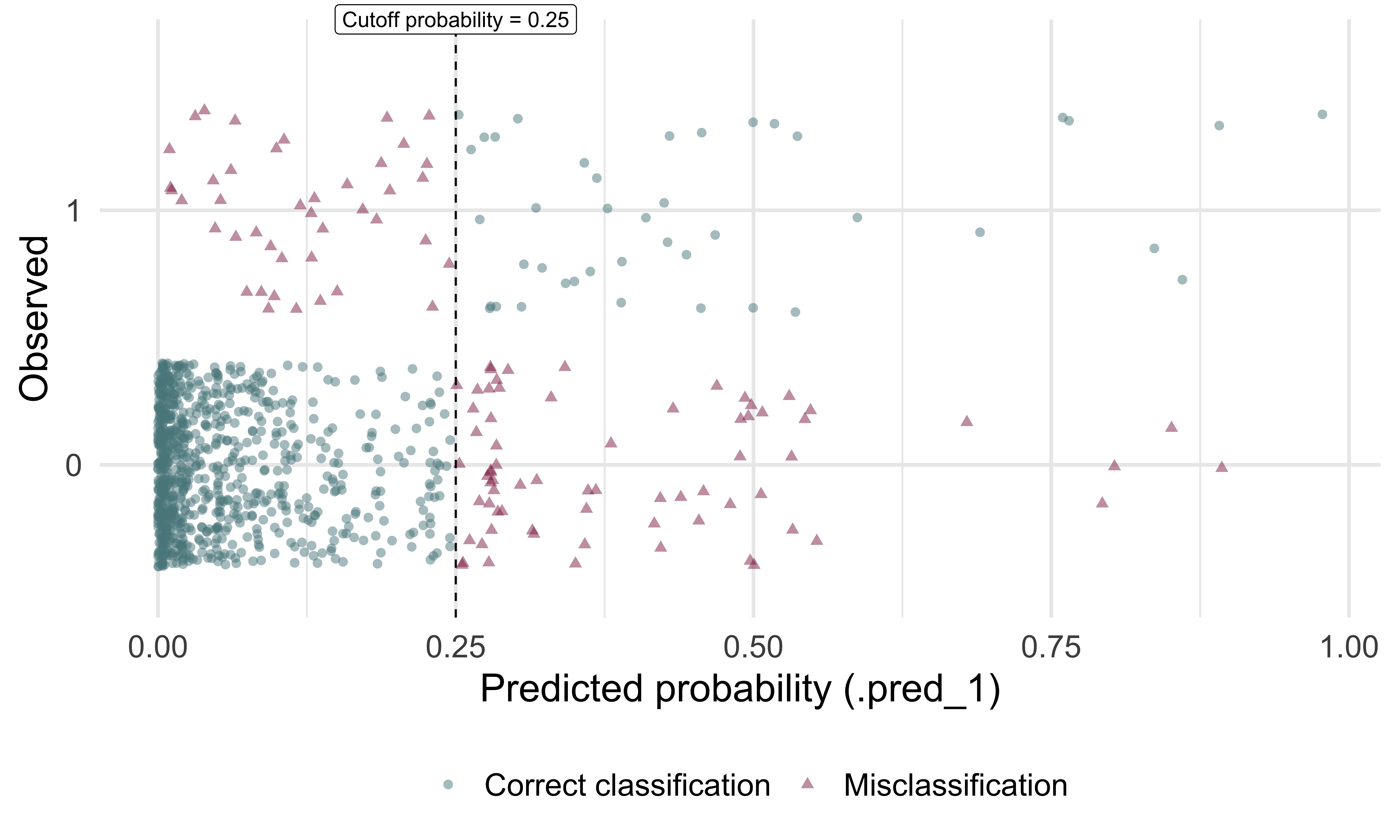 spam_pred = as_factor(if_else(.pred_1 >= cutoff_prob, 1, 0)),