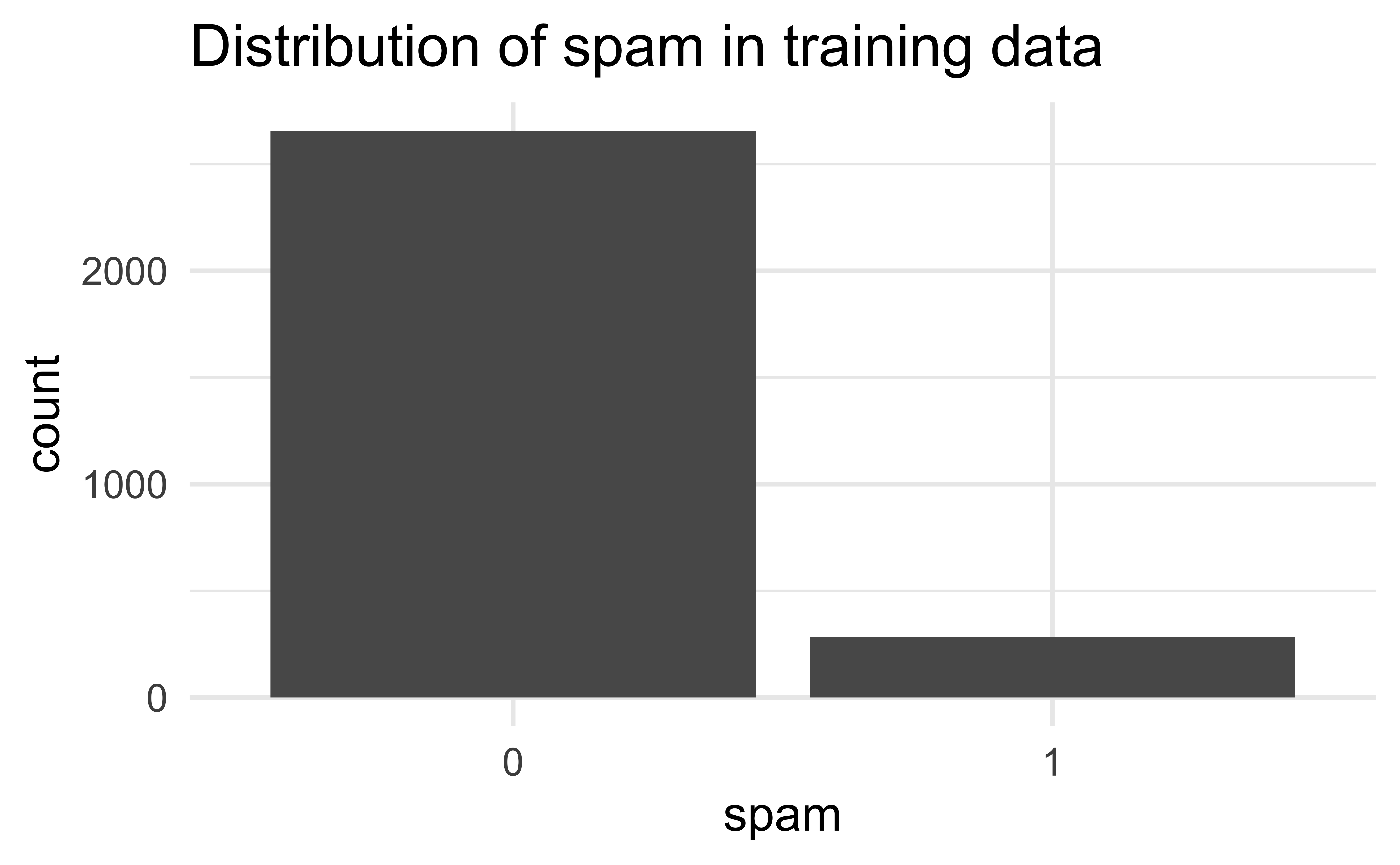 email_test <- testing(email_split)The sample is unbalanced with respect to spam.